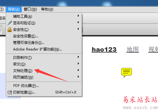 3、點(diǎn)擊了高級(jí)的菜單之后,彈出了下拉菜單選中為文檔處理的選項(xiàng)。