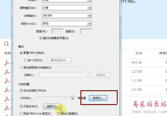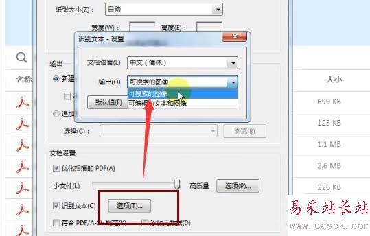 5、接下來設置一下識別文本,如下圖所示,設置輸出為可搜索的圖像