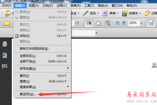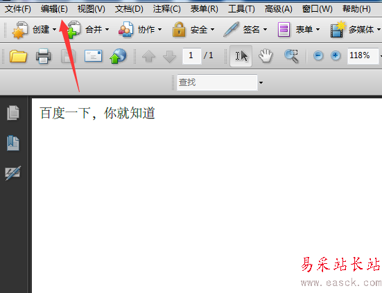 2、然后進行點擊的Adobe Acrobat的菜單中的編輯的菜單。