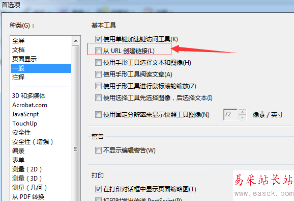 5、選中一般的選項之后,進行再基本工具當中,進行勾選上從url創建鏈接的選項。