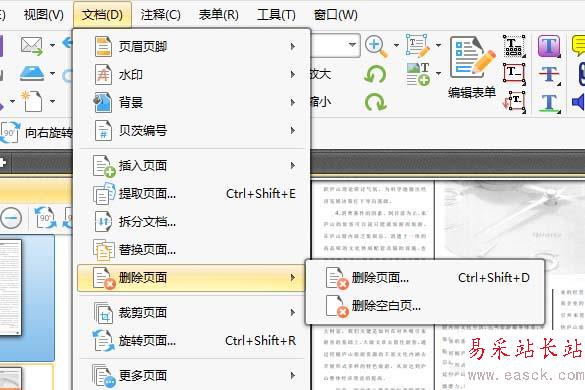 4、也可以不點擊視圖,可以在菜單欄中點擊文檔,選擇刪除頁面,有兩種選項,刪除頁面和刪除空百頁,小伙伴需要哪種選擇哪種就可以啦。