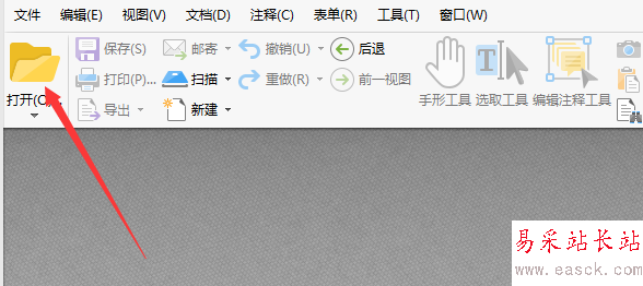 2、打開PDF編輯器軟件,在頁面的左上角找到打開選項,點擊打開選項,選擇需要設置文本高亮的PDF文檔。