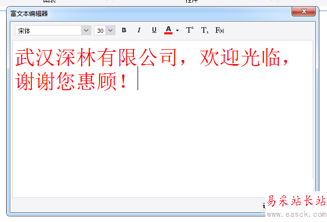 3、選中滾動字幕控件,點擊控件值打開富文本編輯器,插入一些文字內容,如下圖所示: