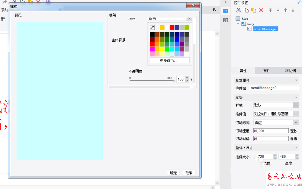 4、設定好內容之后,調整滾動速度和滾動間隔,再根據具體的屬性設置,如下圖所示: