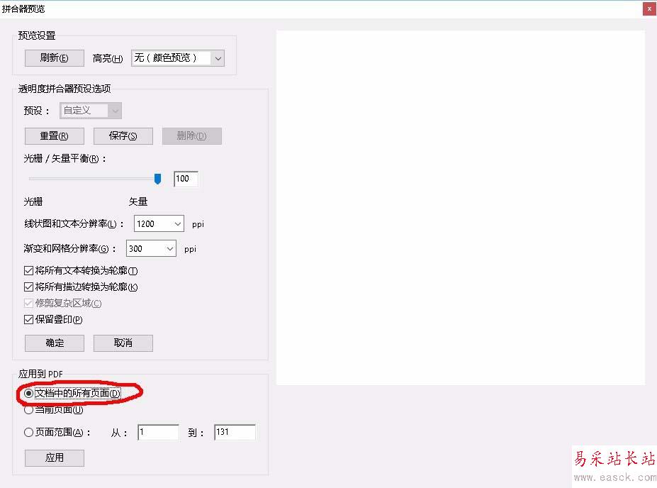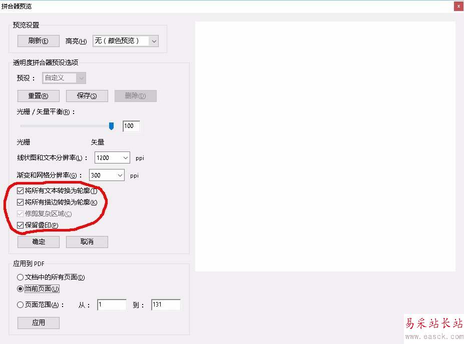 5、“將所有文本轉換為輪廓、將所有描邊轉換為輪廓、保留疊印”等選項全都勾選上;
