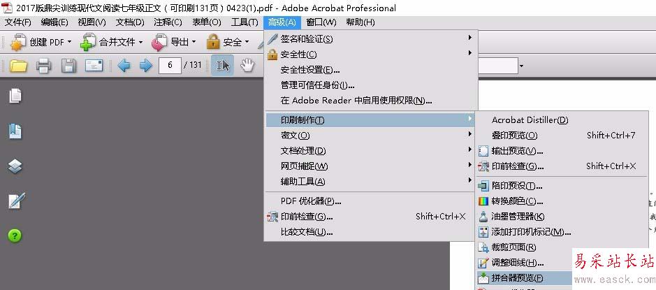 4、在菜單中選擇“高級-印刷制作-拼合器預覽”;