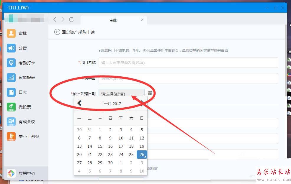第四步:預計采購日期。“預計采購日期”即希望采購回來使用的日期,協調控制各部門的工作銜接和要求,在一定程度上提高效率;如下圖: