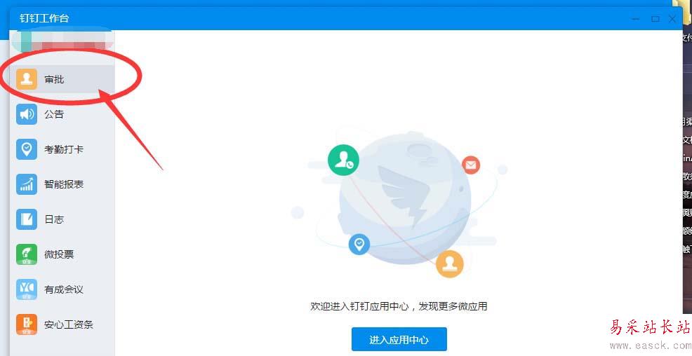 3、點擊“工作”臺之后,彈出工作臺——點擊“審批”,如下圖: