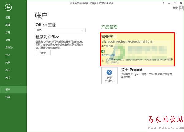 8、點(diǎn)擊“文件”菜單--“帳戶(hù)”--可以看到visio2013需要激活;