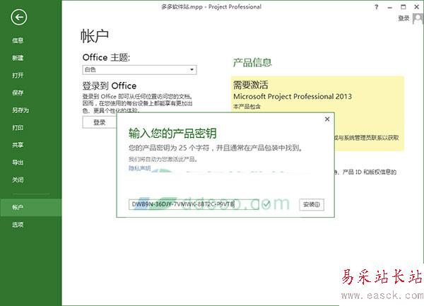 求Microsoft project professional 2013軟件激活方法!microsoft project Pro 2013是微軟官方發(fā)布的一款通用的項(xiàng)目管理軟件,它將可用性、功能和靈活性完美地融合在一起,能夠幫助項(xiàng)目管理者實(shí)現(xiàn)時(shí)間、資源、成本的計(jì)劃、控制,利用project 2013用戶(hù)可以制作出各種實(shí)用的計(jì)劃項(xiàng)目,其中包括活動(dòng)計(jì)劃、合并或收購(gòu)評(píng)估、新產(chǎn)品上市、年度報(bào)表準(zhǔn)備、營(yíng)銷(xiāo)活動(dòng)計(jì)劃、創(chuàng)建預(yù)算、掙值、客戶(hù)服務(wù)等等。接下來(lái)小編將給大家詳細(xì)介紹一下microsoft project Pro 2013安裝、破解及激活的方法教程,附帶的激活工具和密鑰能夠成功激活軟件,用戶(hù)可以無(wú)限制免費(fèi)使用,適用于企業(yè)管理人員使用。