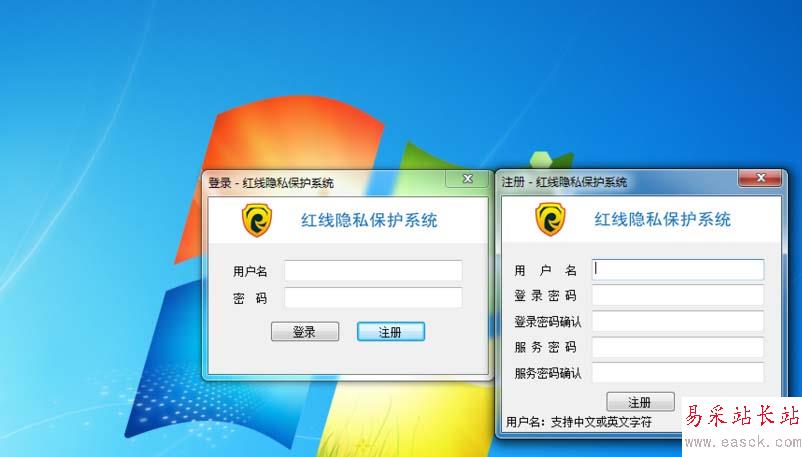 1、首先下載安裝好PS文件透明加密軟件-紅線隱私保護系統,下載安裝就不做詳細描述了,基本操作步驟點下去就可以了。如圖一所示。安裝好后桌面會有紅線的圖標,點擊圖標進入軟件,然后就是第一次注冊,注冊賬號密碼需要記住好,服務密碼一定要牢記。