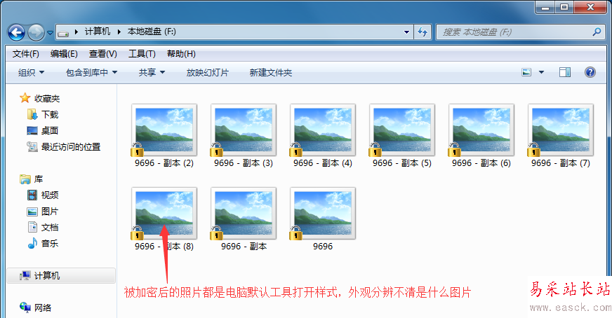 3、這里需要注意的是,只要是加密過的圖片文件就會是電腦默認工具打開樣式,如圖所示,從外觀時看不到圖片內容的,這也是防止截圖的效果。