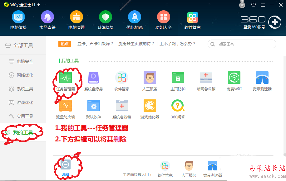 360任務管理器一旦添加就無需再次添加,可以按照步驟1,在“我的工具”里找到,下次直接在我的工具里使用即可,當然也可以通過編輯將其刪除