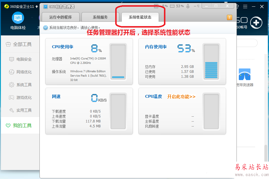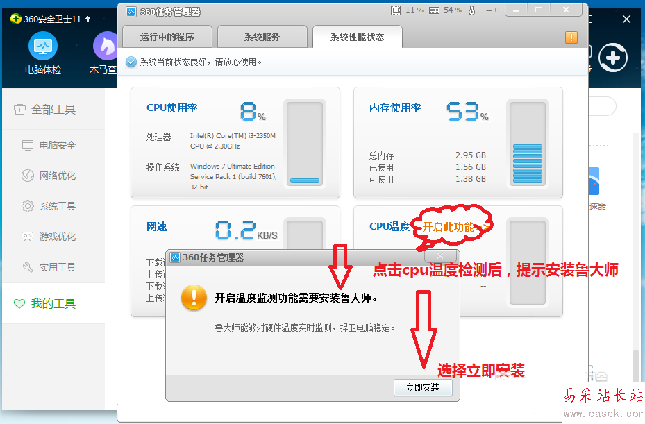 電腦內存及CPU使用率決定了電腦的快慢,大部分情況下我們需要裝專門的檢測軟件才能查看如魯大師,但是帶來的問題是不得不占用大量內存。那么如何用360安全衛士查看內存及CPU使用率呢?