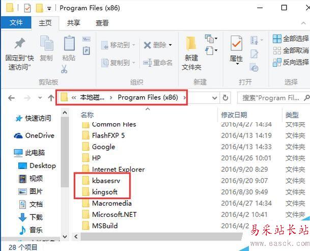 金山的文件一般存儲在c盤,打開C盤,然后找到目錄C:/Program Files (x86),有的是存儲在Program Files里面的,都可以打開看看。然后找到kingsoft和kbasesrv這兩個文件夾。