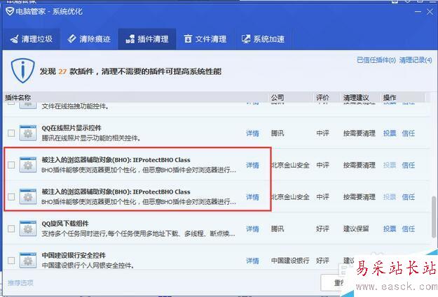插件清理,需要借助電腦管家工具,在電腦管家清理垃圾界面都有清理插件的功能。