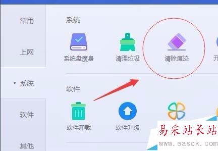 4、在打開(kāi)的系統(tǒng)選項(xiàng)卡功能中點(diǎn)擊右邊的清除痕跡選項(xiàng)