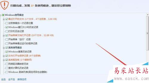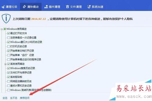7、如果推薦選項(xiàng)里沒(méi)有你需要清除的,你可以手動(dòng)選擇某些選項(xiàng),或者直接全選掃描后清除