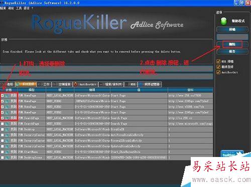 手動掃描完畢后就開始手動清理各項的可疑目標了。先看看軟件各個項目面板