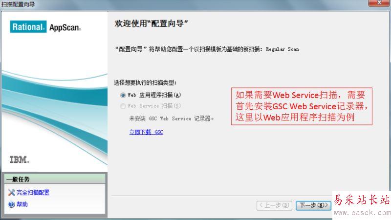 二、點擊 “Regular Scan”,出現(xiàn)掃描配置向?qū)ы撁妫@里是選擇“Web應用程序掃描“,如圖: