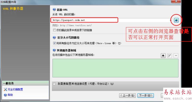 三、點擊”下一步“,出現(xiàn)URL和服務器的配置頁面,如圖,輸入需要測試的URL。