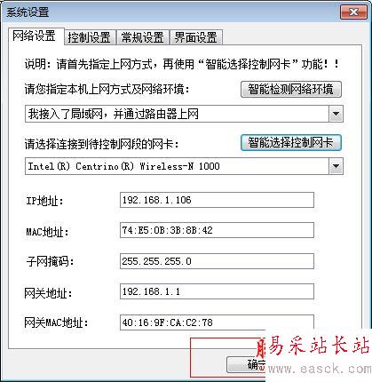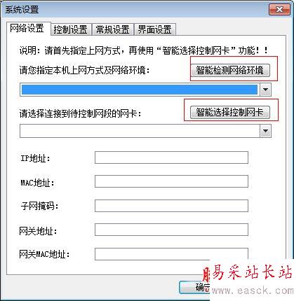 我們點(diǎn)擊智能檢測(cè)網(wǎng)絡(luò)環(huán)境、智能選擇網(wǎng)卡控制,確定。