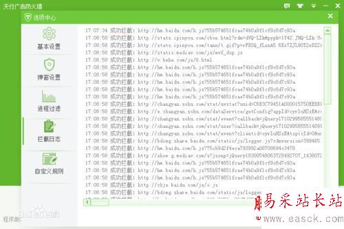 天行廣告防火墻提供攔截日志:可以查看天行廣告防火墻具體攔截了哪些內容。如圖所示: