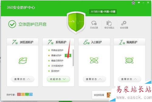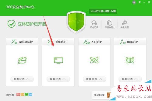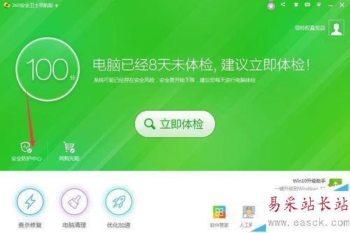 2、選擇下圖的箭頭所指的‘’安全防護中心