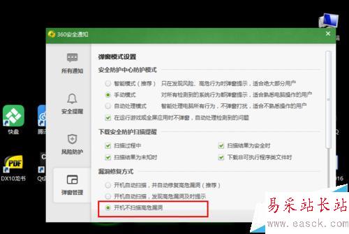 3、然后,在漏洞修復(fù)方式下設(shè)為“開機(jī)不掃描高危漏洞”即可。