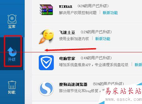 1、如果想要升級軟件的話,點擊“升級”選項。