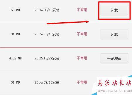 6、點擊想要卸載的軟件右側(cè)的“卸載”選項即可。如果軟件沒有被完全清理,可以根據(jù)提示,選擇徹底清理后,完成軟件卸載。