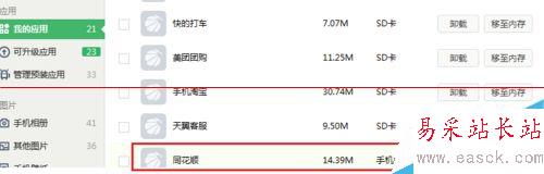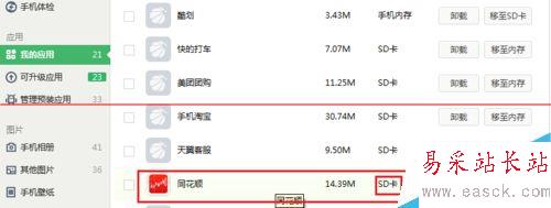4、比如將同花順軟件搬家至SD卡,只需點擊相應的移至“SD卡”即可;