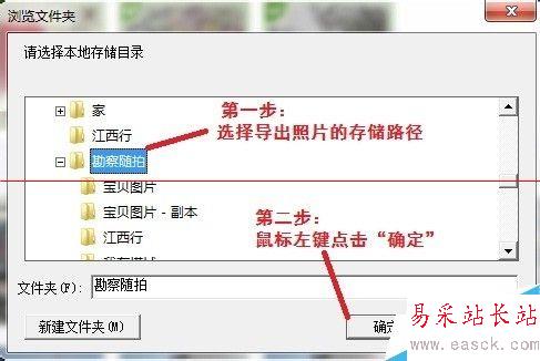 7、為導出的照片選擇存儲的路徑,然后用鼠標左鍵點擊“確定”開始導出照片。