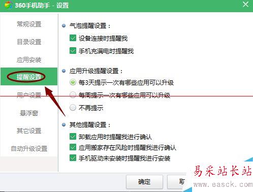 4、初次打開,一般都位于設置的“應用安裝”下,然后我們將其切換至下面的“提醒設置”