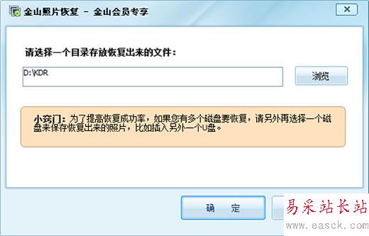 第五步:選擇恢復(fù)的路徑后點(diǎn)擊"確定":