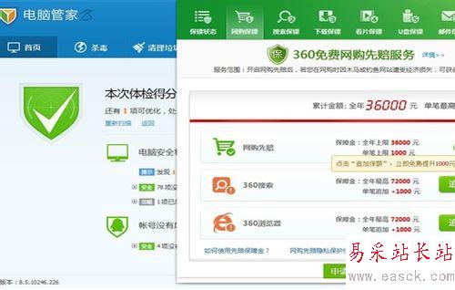 網購保障:相信有過網購的用戶都知道,很多殺毒軟件都有網購先賠的服務,360也不例外。這是對我們的一種保障,也是對他們的一種肯定。但騰訊管家目前卻還沒有這項服務,另我們感到十分遺憾。現如今釣魚網站滿天飛,身為一家專業的殺毒軟件公司,如果都不能保障我們的網購安全,那簡直就是個笑話。