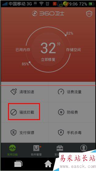 360手機(jī)衛(wèi)士設(shè)置區(qū)域攔截黑名單的方法