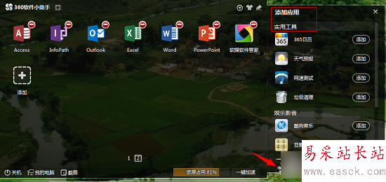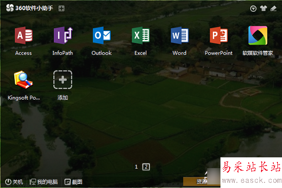 360軟件助手,是個很方便的小助手,特別是在win8里更顯得重要,在這里你不但可以添加程序還可以添加文件夾或是磁盤。