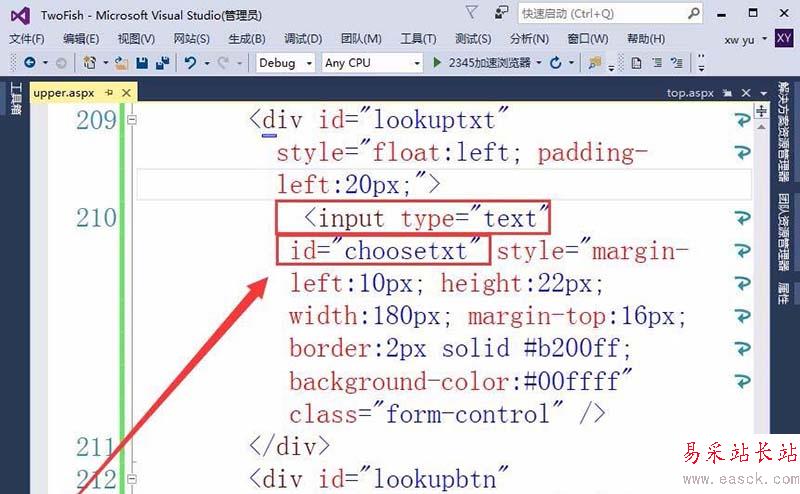 2、在標簽中設置搜索框的標識,標識名為lookuptxt。