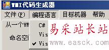 從上圖中可以看出本人的本本BIOS是DELL的,在右側生成代碼處可以看到相關的VBS代碼,如果看默認生成的VBS代碼不爽可以換成C#或者VB.NET的,具體操作就是在“編程語言”菜單處選擇,如下圖所示: