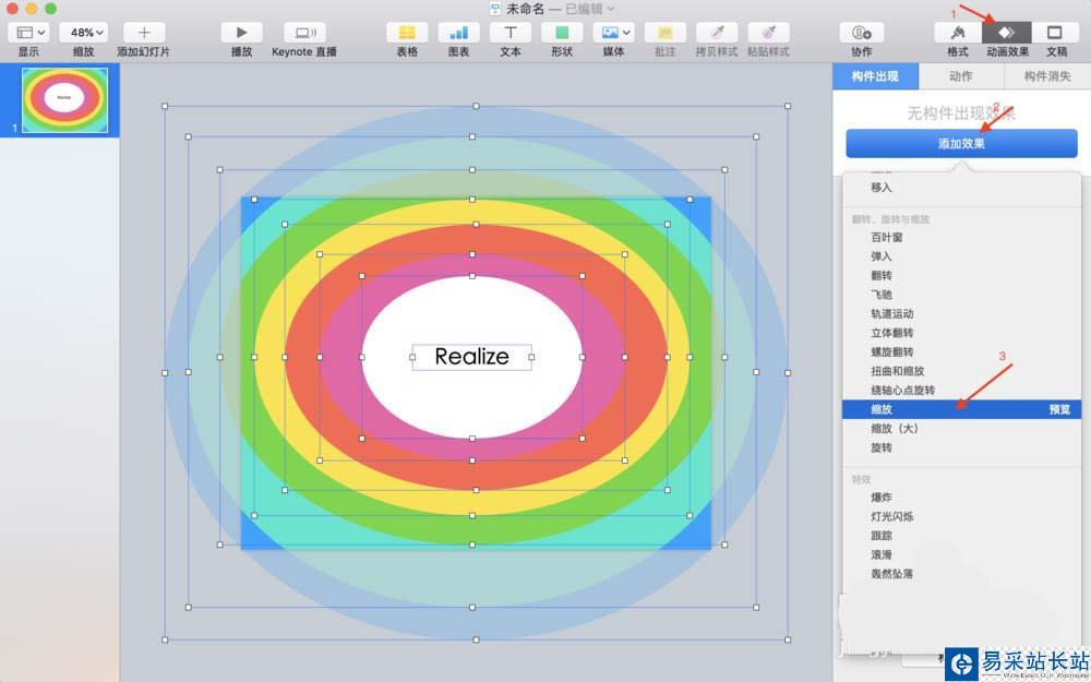 Keynote想要制作一個逐步縮放的動畫,該怎么制作這個動畫呢?下面我們就來看看詳細的教程。