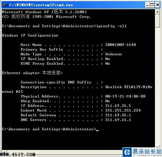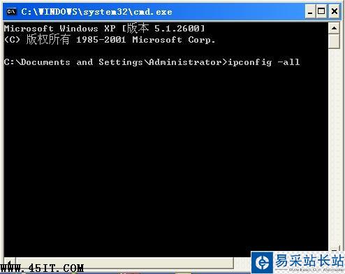 (4)出現網絡配置信息,在“本地連接”下方有“Physical Address”,在它后面對應的一串12位的地址即為自己機器的MAC地址(務必看清是“本地連接”下面,不要看成無線網卡的地址或其他地址)。