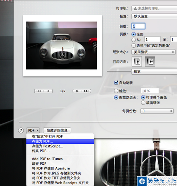 第四步:在左下角的PDF選項中選擇“儲存為PDF”。