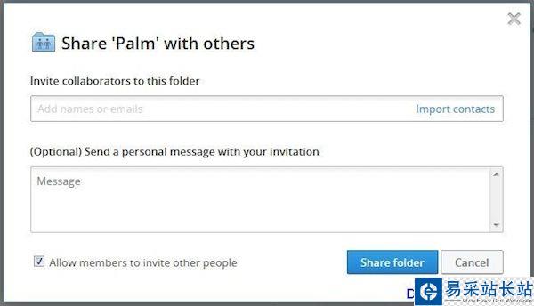 第六步:選好后,下一步就是邀請朋友來共享這個文件夾了,可以直接輸入郵箱地址,也可以導入你郵箱的聯系人來發出邀請。