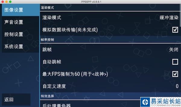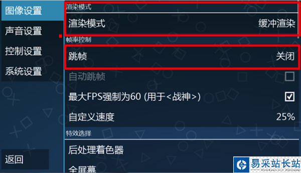 聲音方面最新版本已經合并了atrac3+解碼器 所以就不用再調整了默認即可。在圖像設置中,渲染模式分為下圖中的四種模式 :