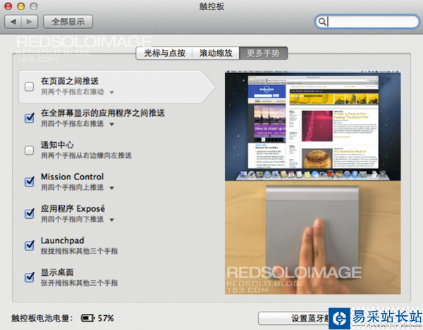 在屏幕之間推送 這個不要選。這個切換其實就是 前進和后退。os x 對這個切換處理的很不理想,有的地方要用兩個手指滑動,有的地方要用三個手指滑動,所以直接取消,交個btt來設置。BTT可以設置系統級別的 前進和后退,大部分軟件和finder都適用。區別是,safari失去了翻頁效果,也無所謂了。如果不常用到通知功能,通知中心也不要選。雙指邊緣滑動也用容易給后面的操作帶來誤操作。系統偏好設置到此為止。