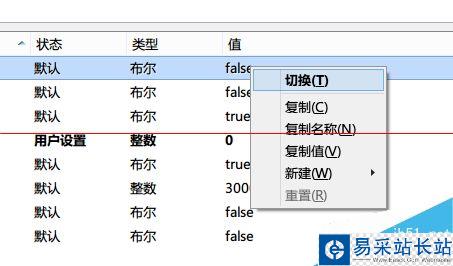 5、看到第一條,gfx.direct2d.disabled,它的值默認為disable,右鍵點擊它,然后點擊"切換",值變為true即為成功了