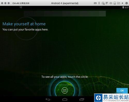 6、啟動完成以后,即可在 Mac 上看到 Andriod 的系統界面了。可以用鼠標當作手指去點擊 Andriod 界面上的圖標。