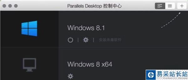 1、在 Mac 上打開 Parallels Desktop 的控制中心,點擊右上角的 + 按鈕,創建一個新的虛擬機。