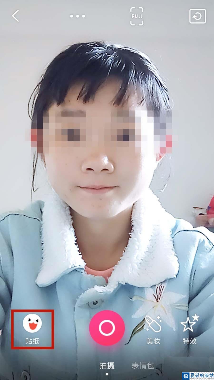 3、在拍攝頁(yè)面,可以點(diǎn)擊【貼紙】,選一個(gè)美美的頭像再拍,如圖所示。